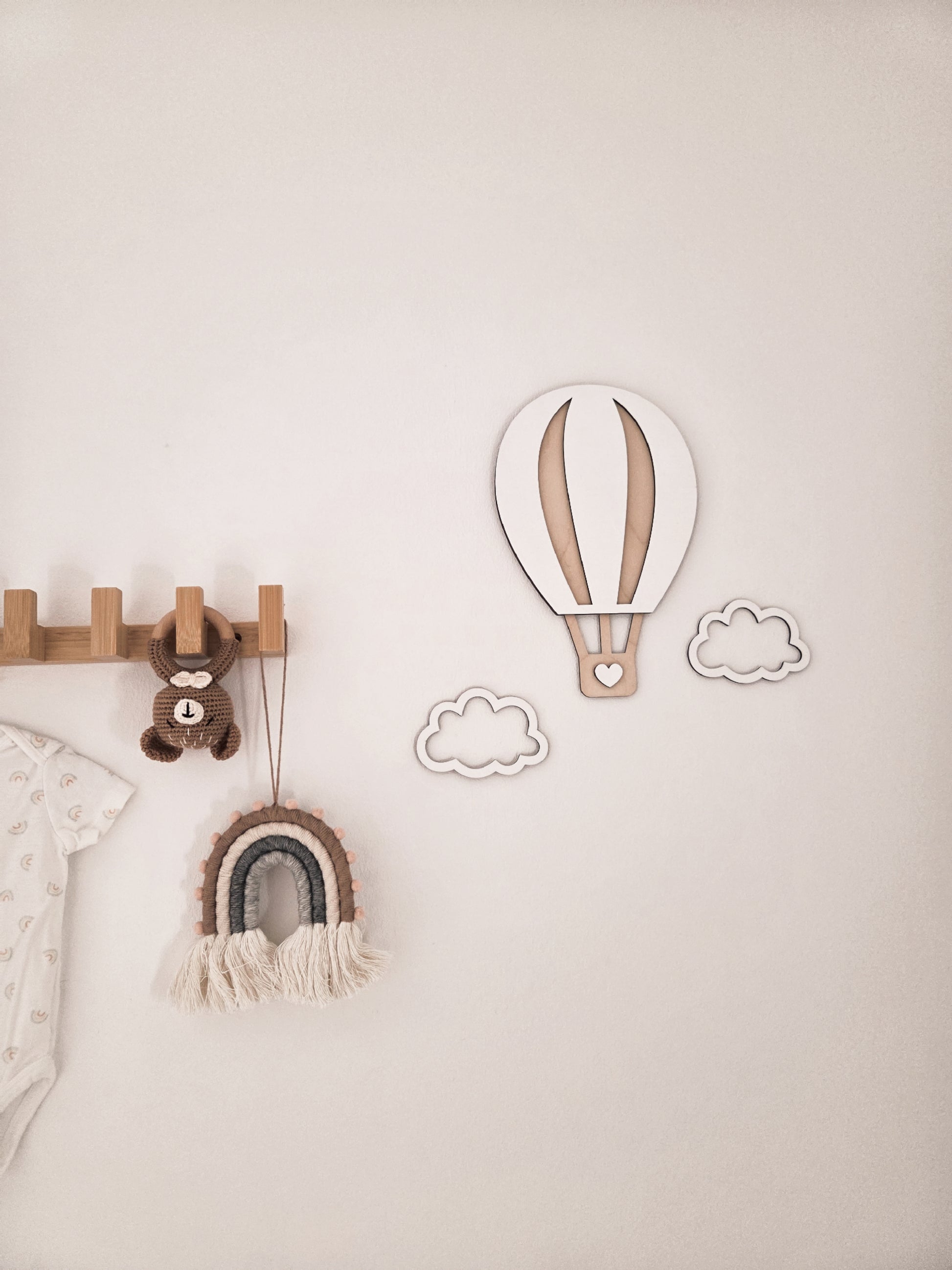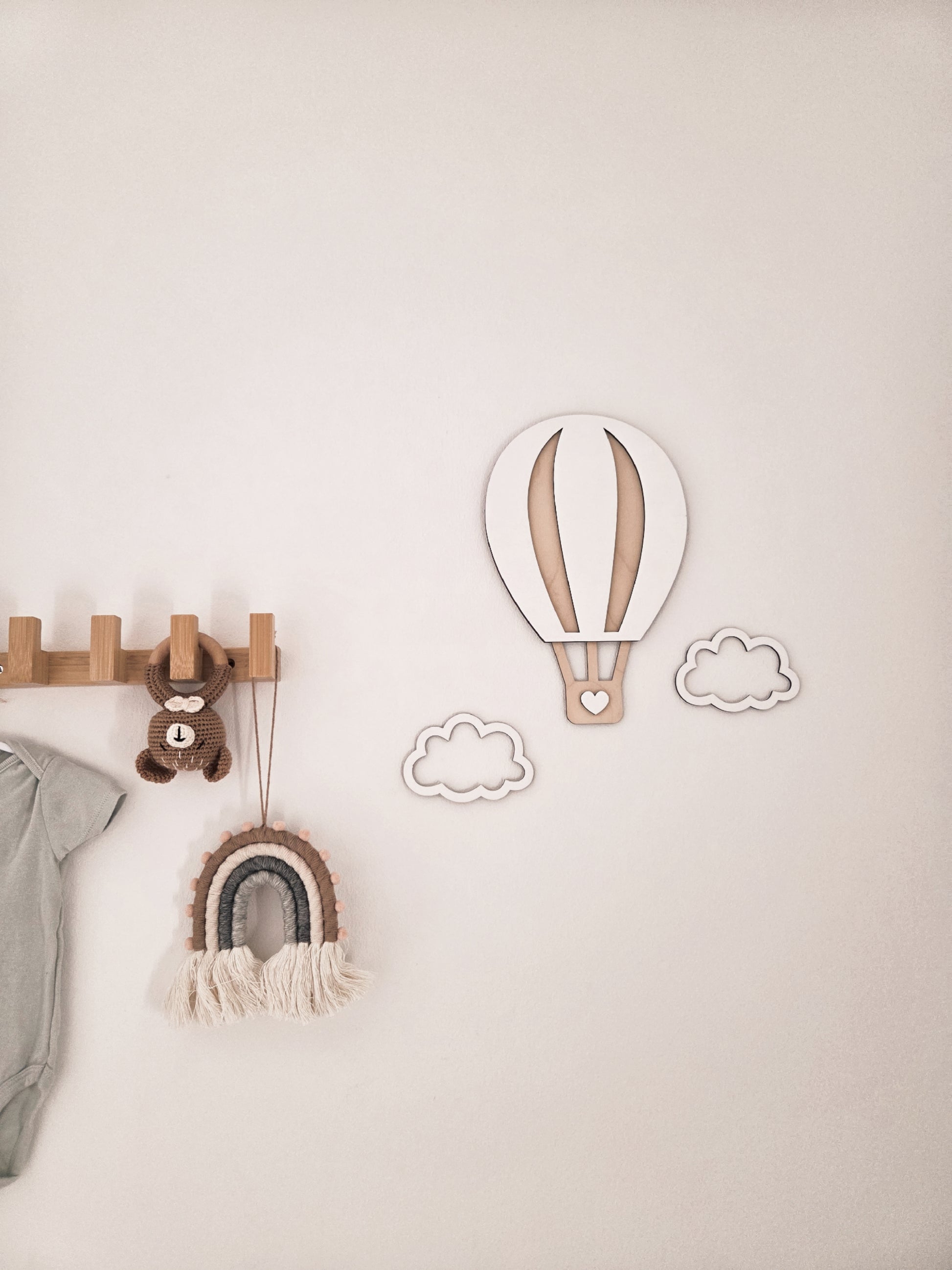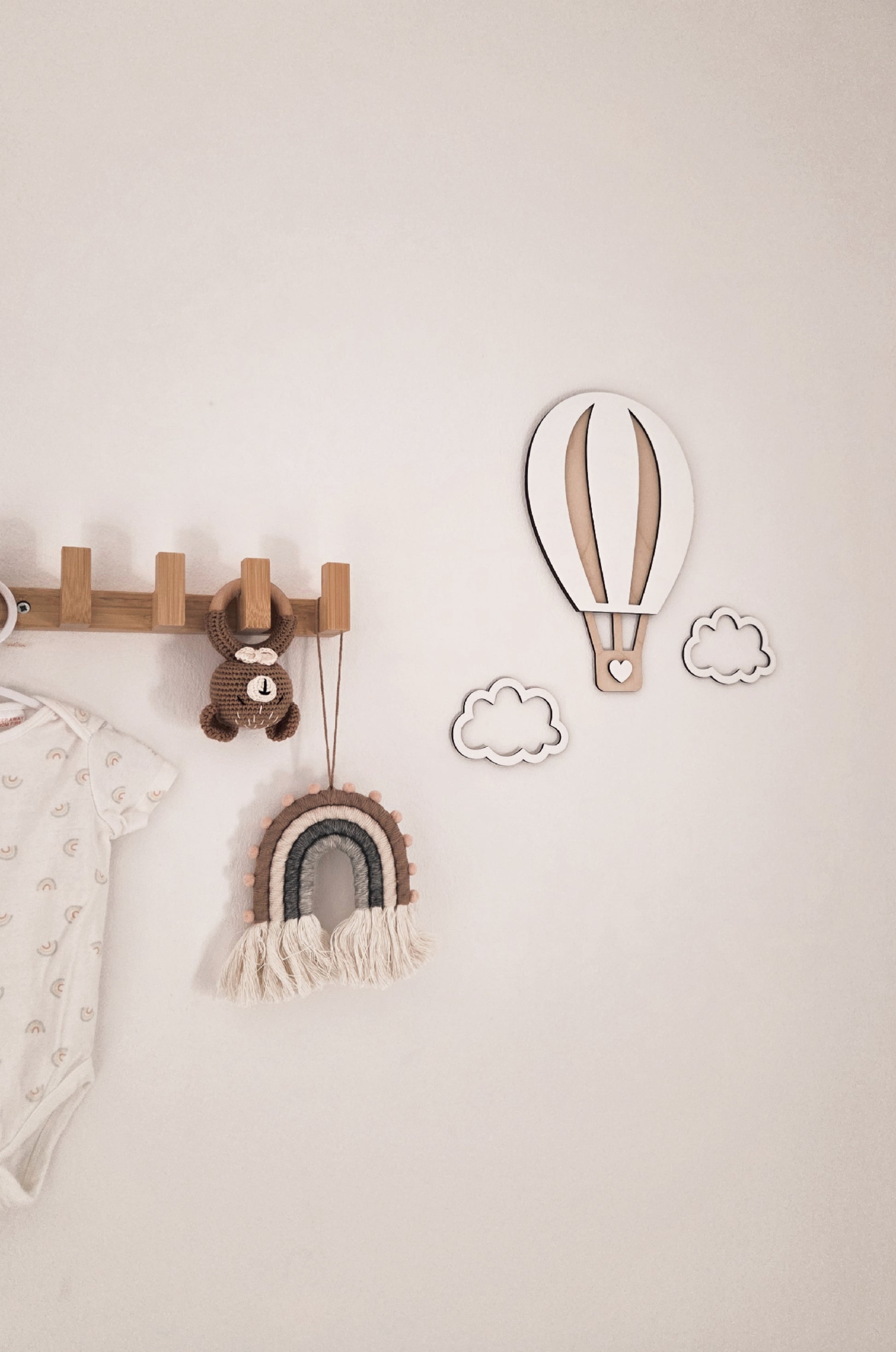 Setze einen besonderen Akzent im Zimmer von deinem Liebling mit dieser dekorativen Wanddeko in Heißluftballonform, bestehend aus einem Ballon und zwei Wolken. Das aus hochwertigem Holz gefertigte Set verbindet Natürlichkeit mit modernem Design und schafft eine warme, freundliche Atmosphäre in jedem Raum.