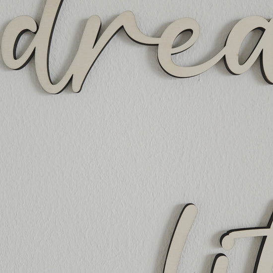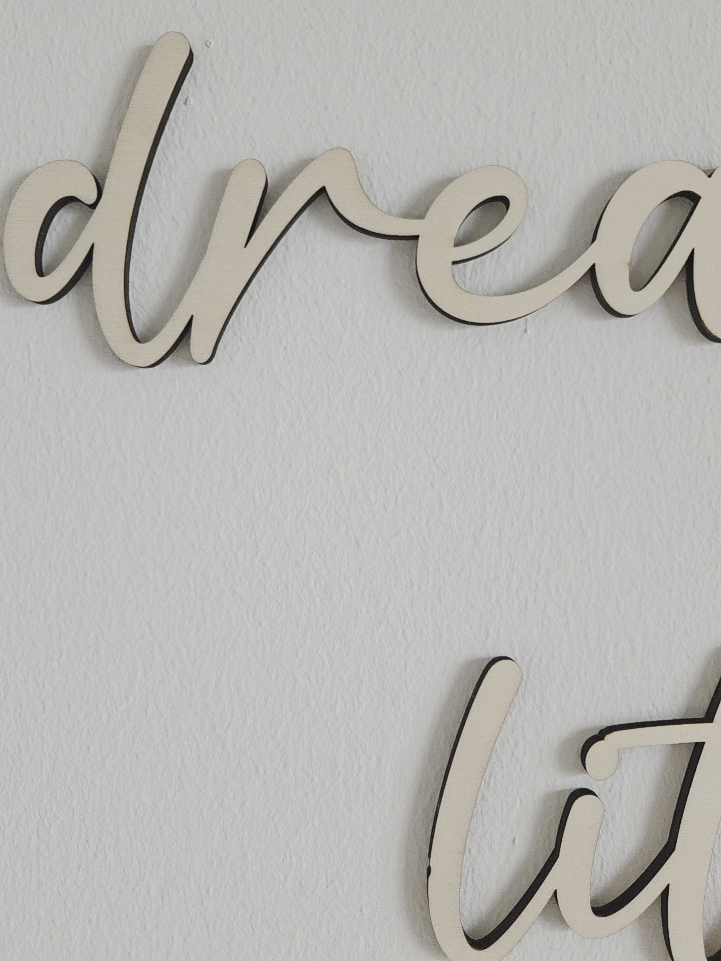 Unser Schriftzug "dream big little one" aus Holz ist die ideale Kinderzimmer Wanddeko, um dem Raum deines Kindes eine persönliche und liebevolle Note zu verleihen. Jeder Schriftzug wird mit viel Sorgfalt gefertigt und bringt natürlichen Charme ins Zuhause. Der Holzschriftzug ist ideal als Geschenk zur Geburt, Taufe oder zum Geburtstag – für alle, die ihre Kleinen daran erinnern möchten, dass sie unendlich geliebt werden.
