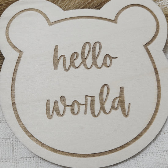 hello world und waiting for you Holzschild im Bärenstil