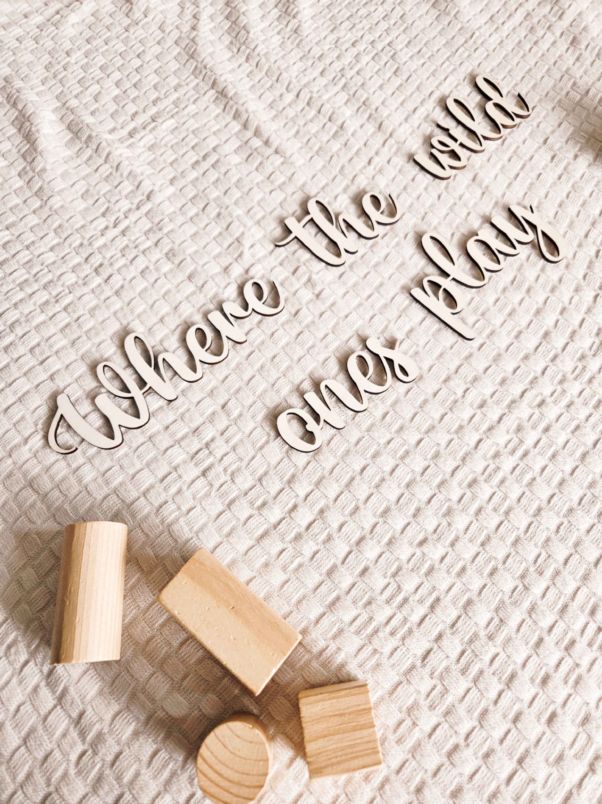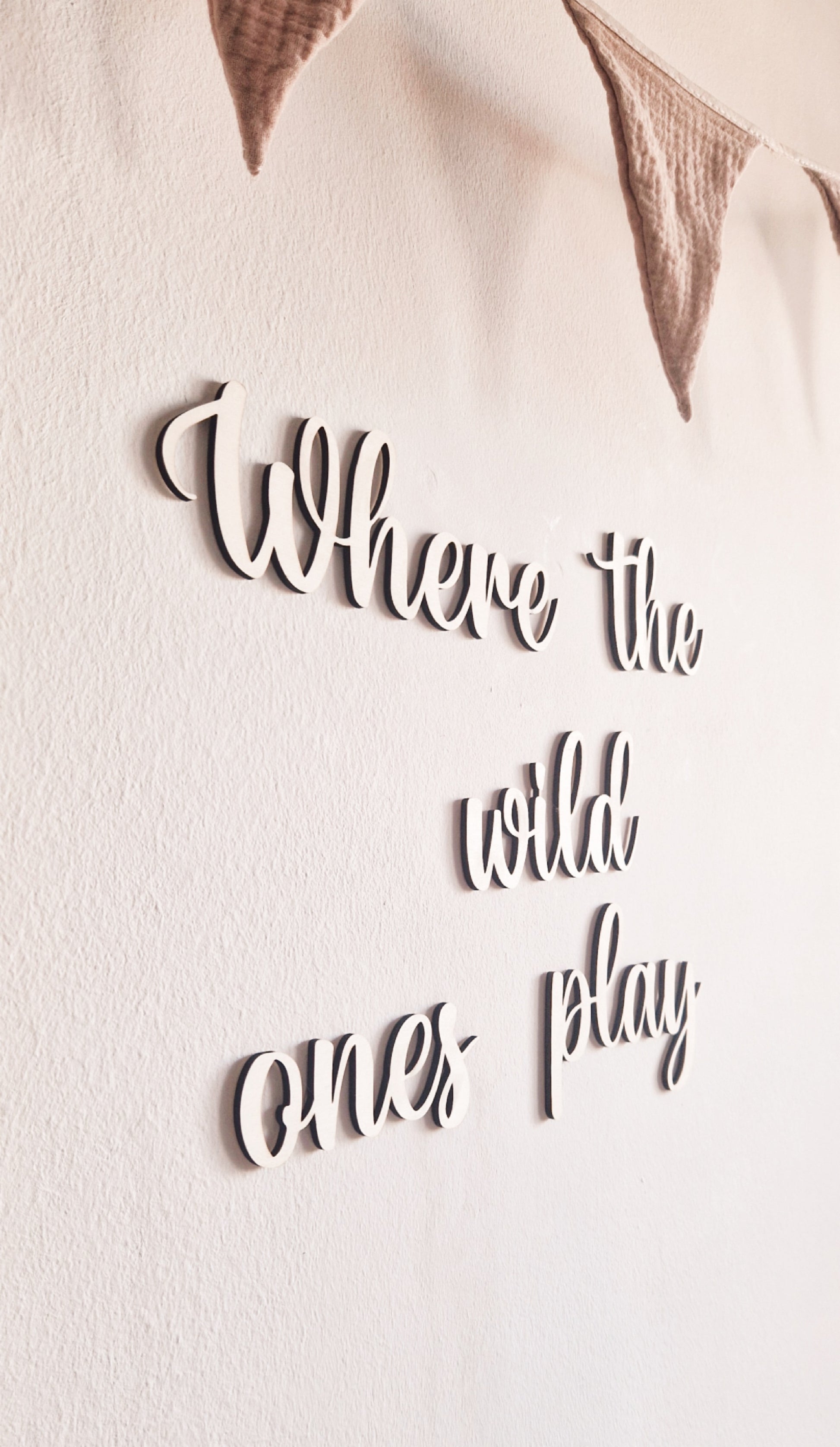 Bringe Abenteuerlust und gute Laune ins Kinderzimmer – mit unserem liebevoll gefertigten Holzschriftzug "where the wild ones play". Dieses dekorative Highlight ist nicht nur ein echter Blickfang an der Wand, sondern auch ein inspirierendes Statement für kleine Freigeister.