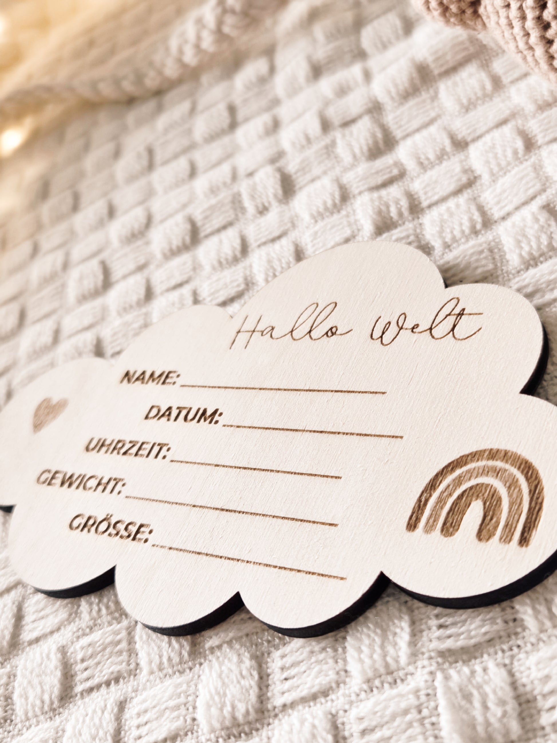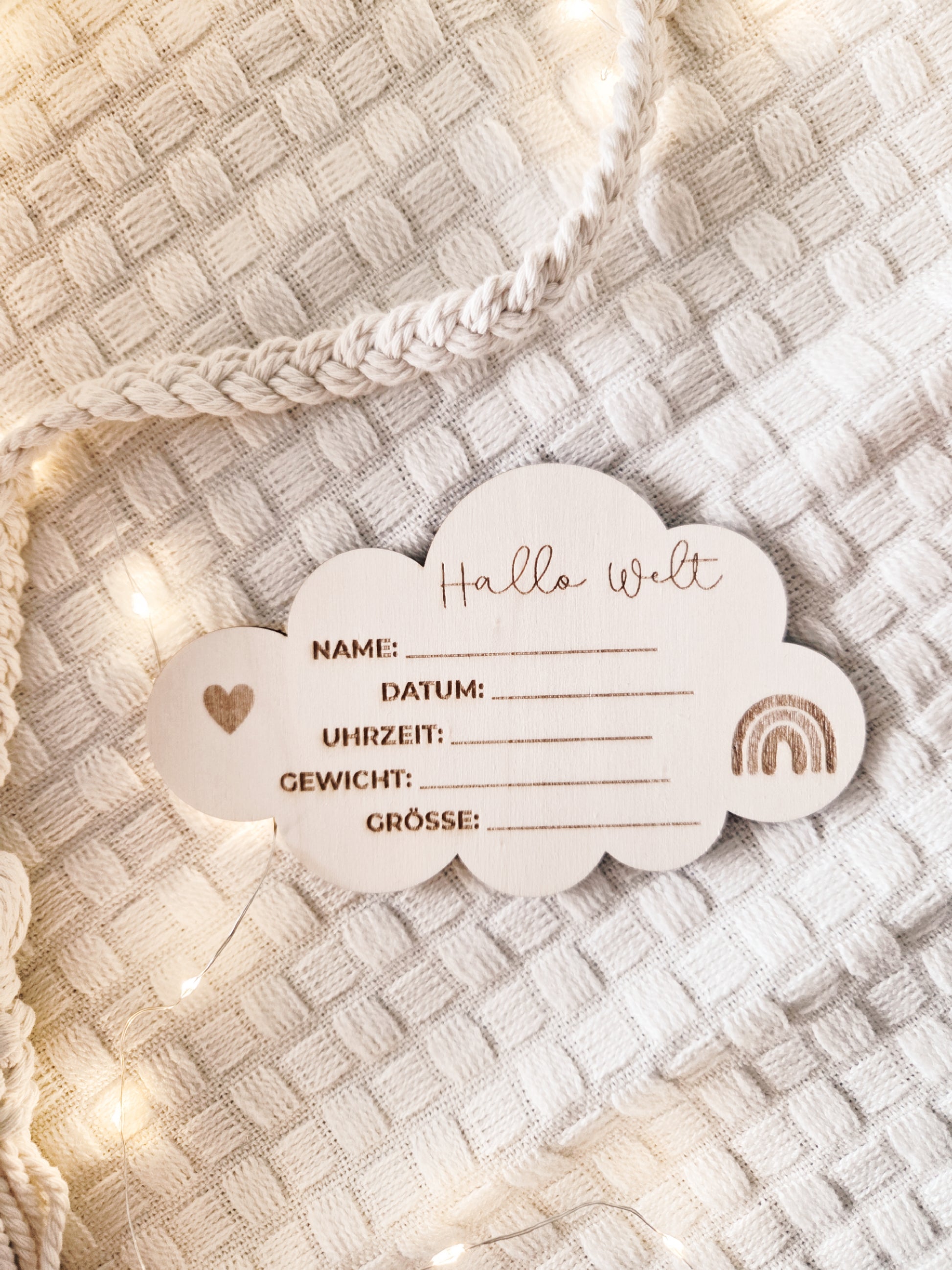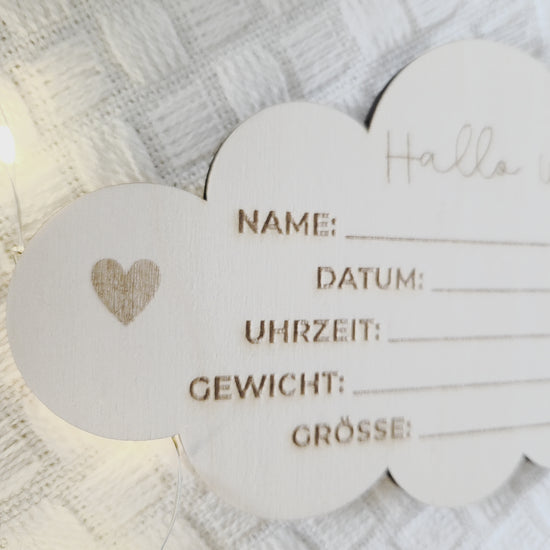 Unser liebevoll gestaltetes Holzschild im Wolkenmotiv ist eine wunderbare Idee dein Baby auf der Welt willkommen zu heißen. Das Schild wird ganz individuell für dich angefertigt und du kannst es dann mit den passenden Daten ausfüllen.