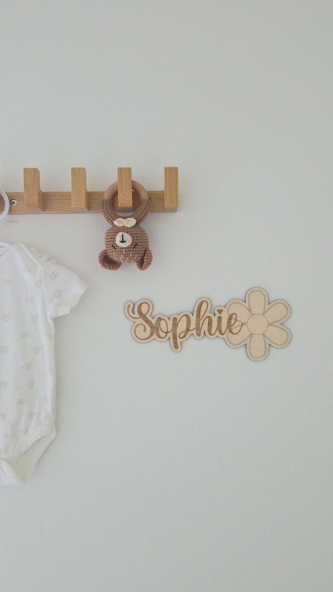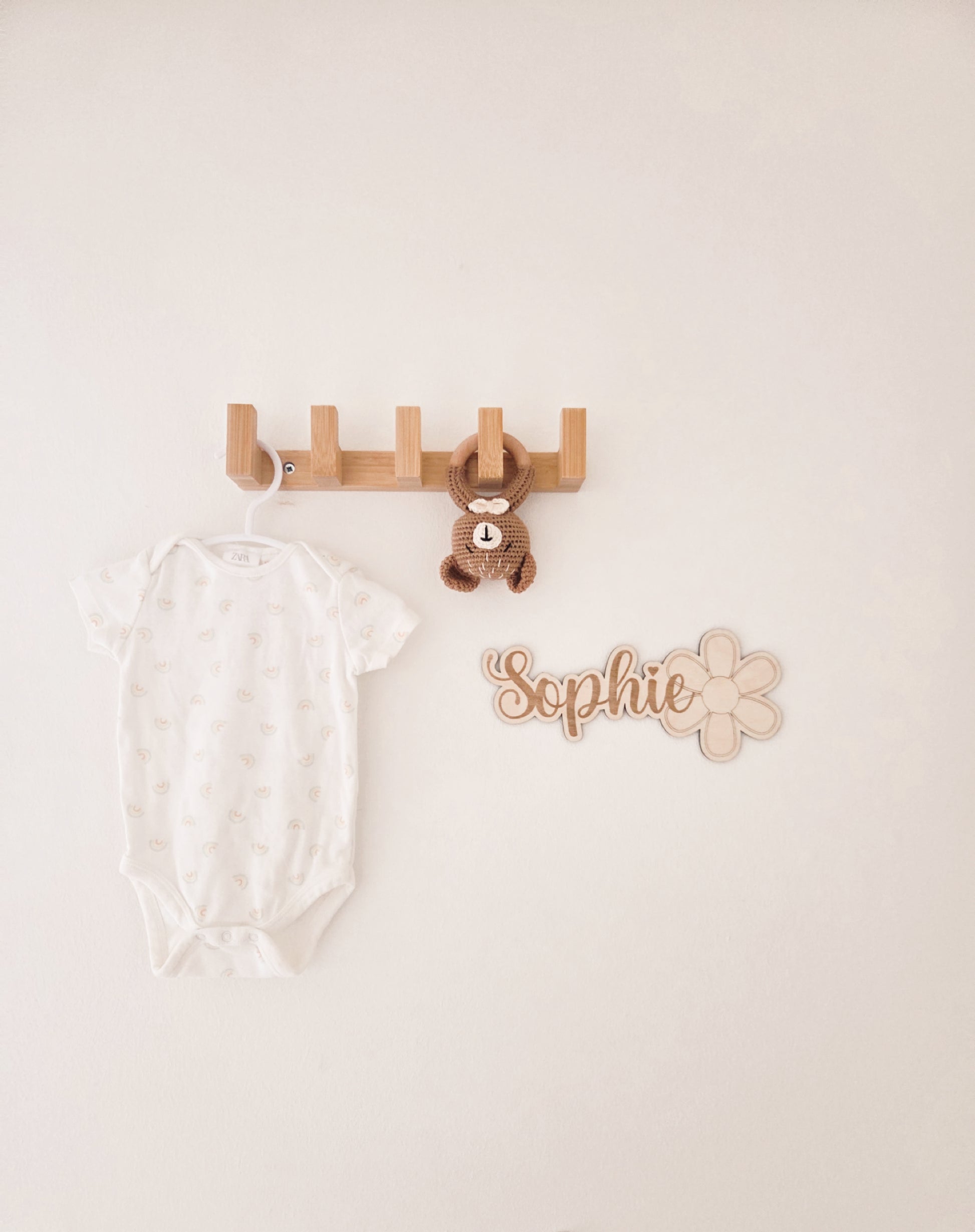 Unser personalisiertes Namensschild kombiniert zeitloses Naturholz mit einem verspielten, modernen Design. – perfekt fürs Kinderzimmer, als Türschild, Wanddeko oder als besonderes Geschenk für kleine und große Träumer. Das Schild wird mit deinem Wunschnamen personalisiert und ganz individuell für dich angefertigt.