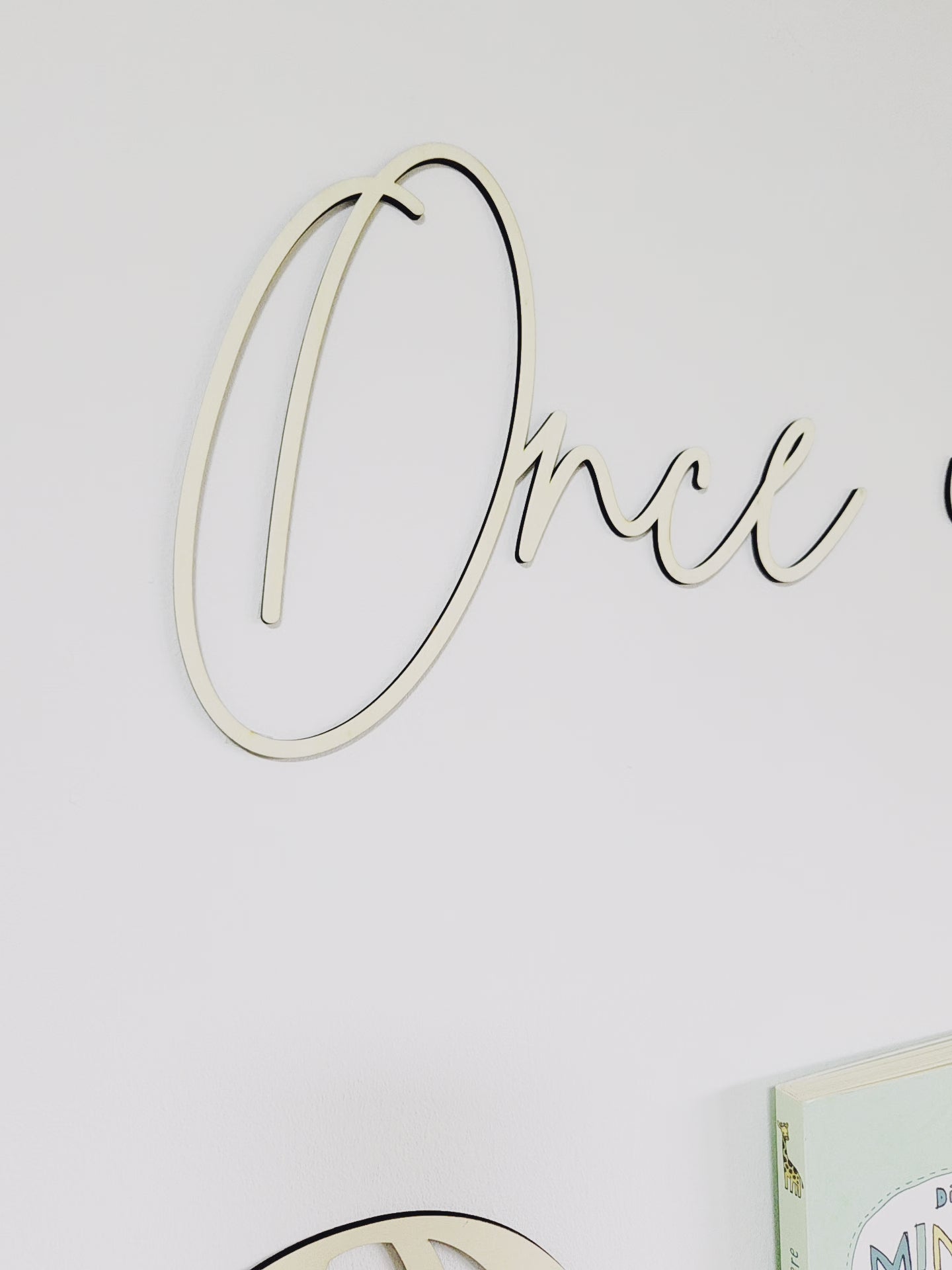 Mach deine Leseecke zu einem ganz besonderen Ort! Unser liebevoll gestalteter Schriftzug aus Holz "Once upon a time" ist die perfekte Wanddeko für alle, die Bücher lieben. Mit seinem natürlichen Charme aus hochwertigem Holz bringt es Wärme und Gemütlichkeit und schafft einen Platz, an dem Geschichten lebendig werden und Fantasie wachsen darf. Ideal für jedes Kinderzimmer.