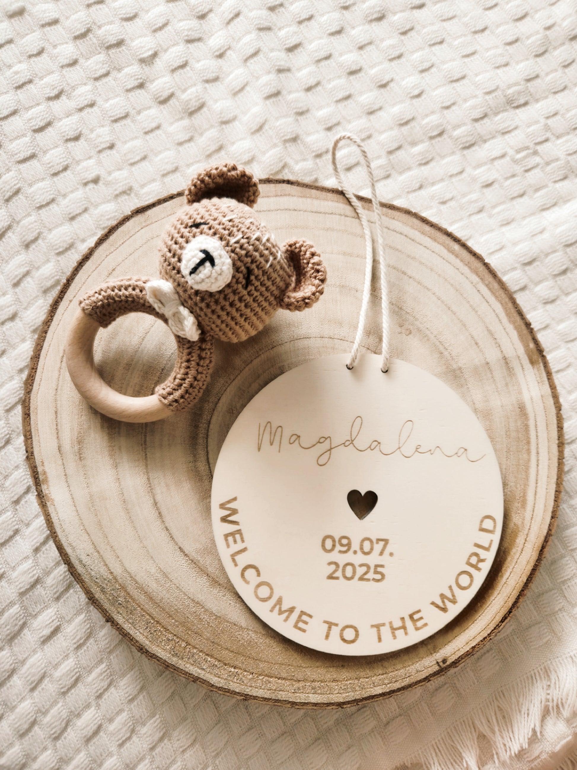 Unser personalisiertes Namensschild eignet sich wunderbar die ersten wertvollen Momente stilvoll festzuhalten - die individuell gravierte Geburtsanzeige aus Holz ist das ideale Accessoire für Neugeborenen-Shootings. So entstehen Erinnerungsbilder, die für immer im Herzen bleiben. Das Schild wird mit deinem Wunschnamen und Geburtsdatum personalisiert und ganz individuell für dich angefertigt.