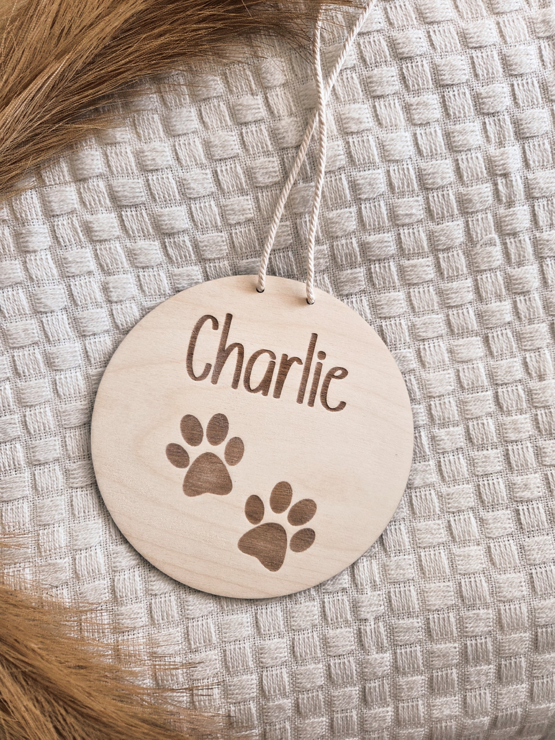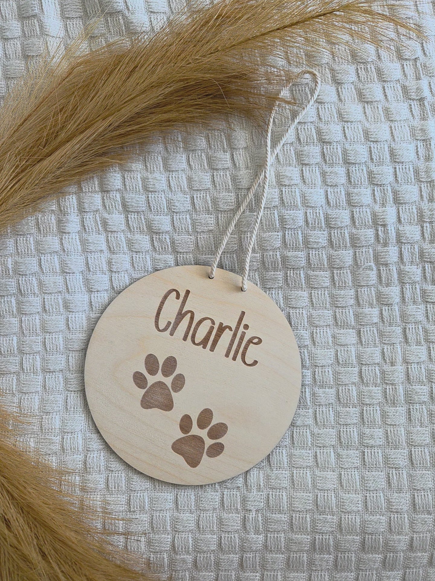Ob als süße Ergänzung über dem Körbchen, als Willkommensschild an der Haustür oder als dekoratives Element an der Wand über dem Futternapf – dieses Holz-Namensschild macht dein Zuhause ein Stück persönlicher und zeigt jedem Besucher, wem dein Herz gehört.