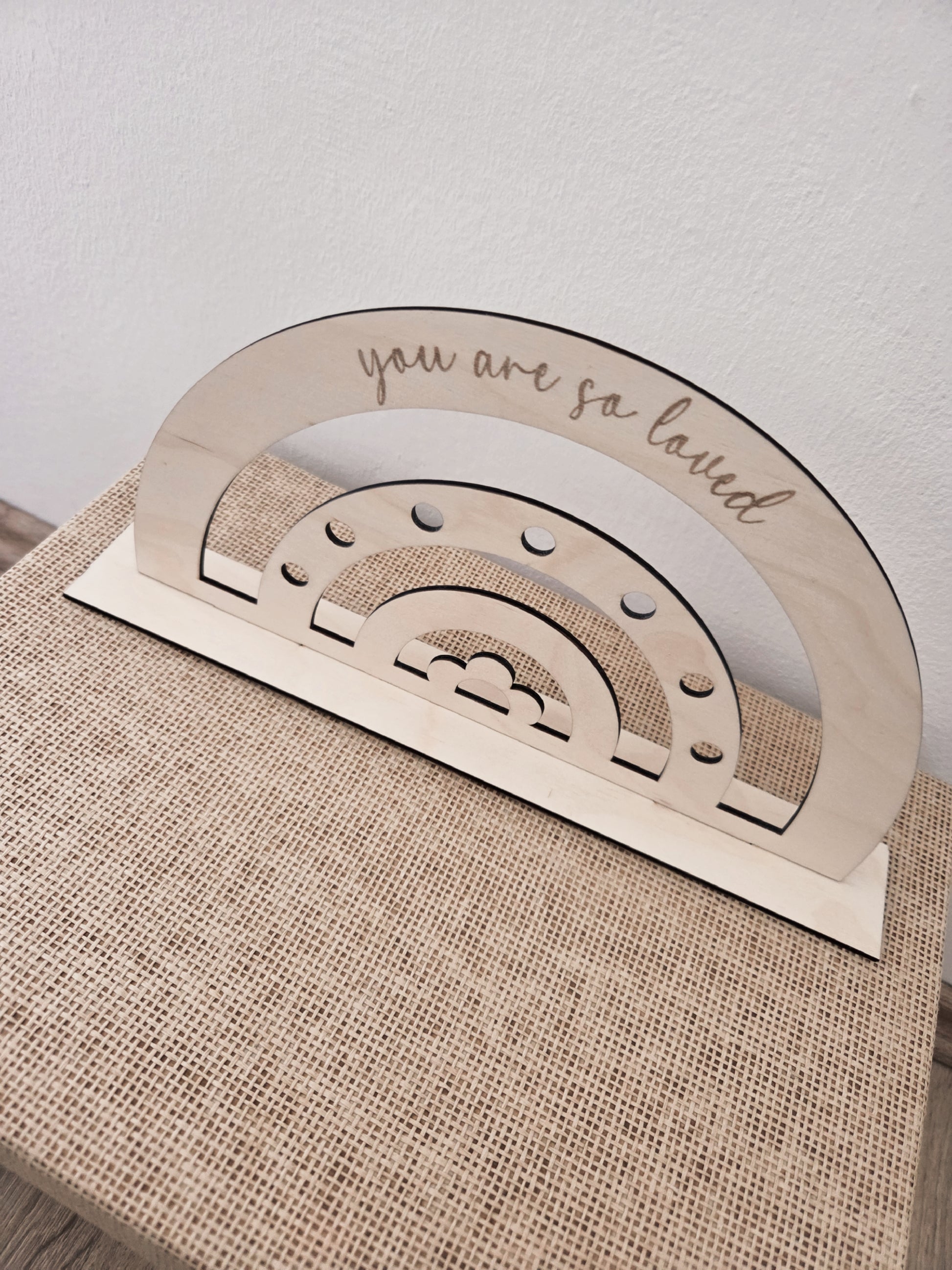 "you are so loved", ein liebevolles Dekorationsstück das Wärme und Freude in jedes Kinderzimmer bringt und durch liebevolle Details überzeugt. Ein perfektes Geschenk für neue Eltern, kleine Sonnenanbeter oder einfach als liebevolle Dekoration, die jeden Tag aufs Neue strahlen lässt. Größe und Design sind auf eine zauberhafte Atmosphäre abgestimmt – natürlich, warm und einladend.