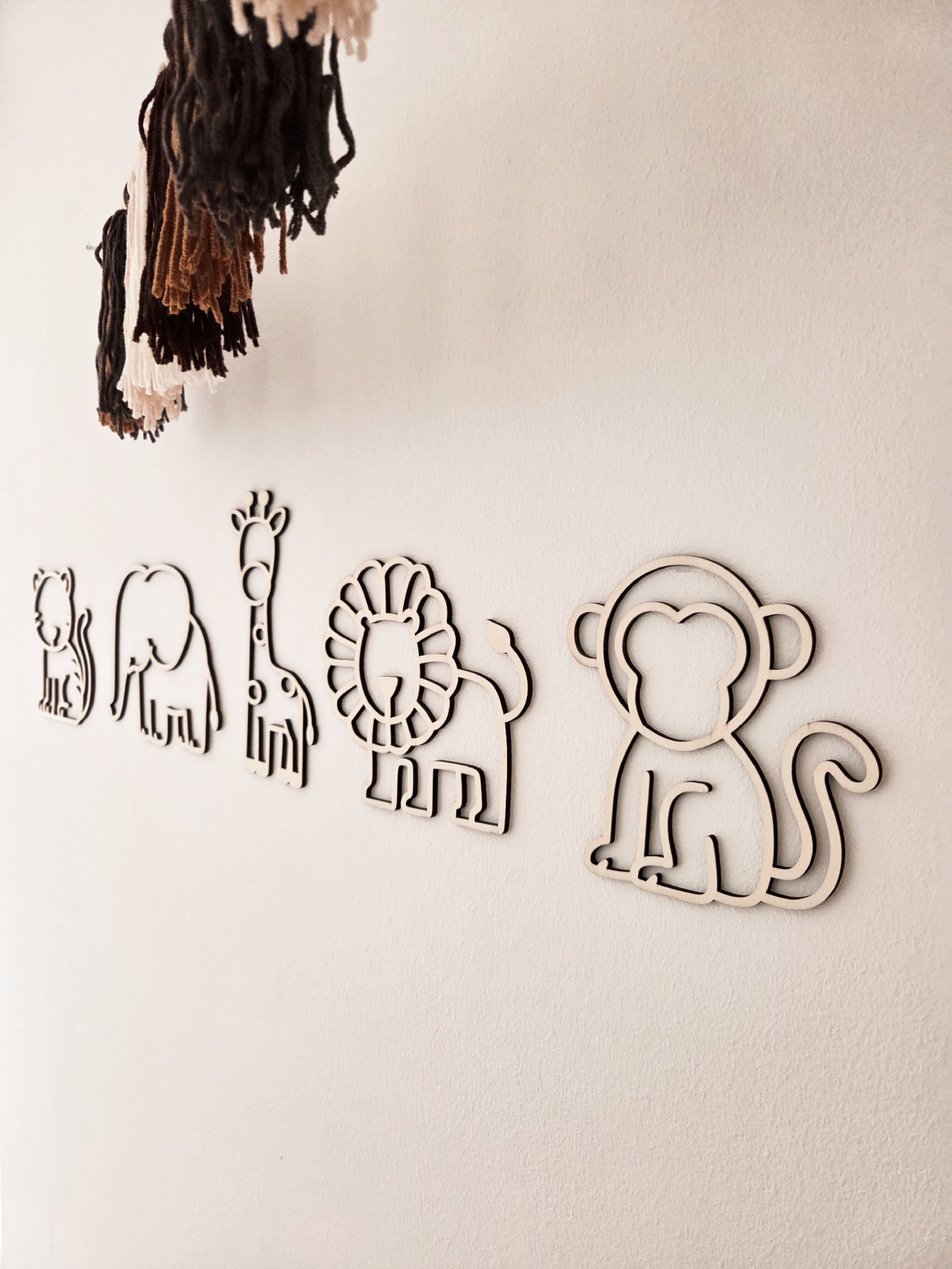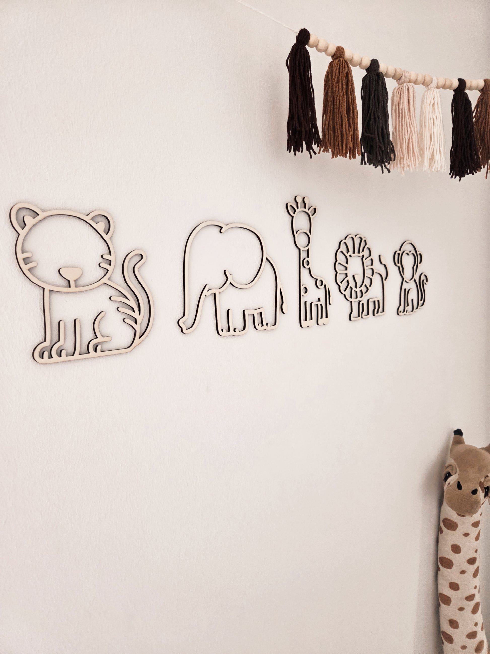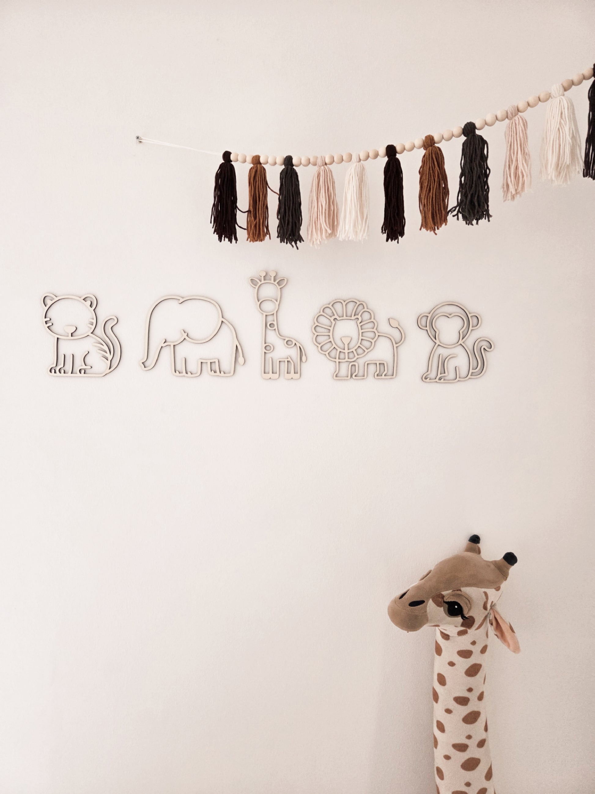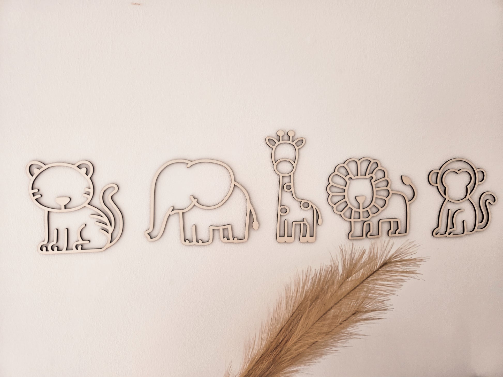 Setze einen besonderen Akzent im Zimmer von deinem Liebling mit dieser dekorativen Wanddeko im Safaridesign. Die aus hochwertigem Holz gefertigten Tierchen verbinden Natürlichkeit mit modernem Design und schaffen eine warme, freundliche Atmosphäre in jedem Raum.