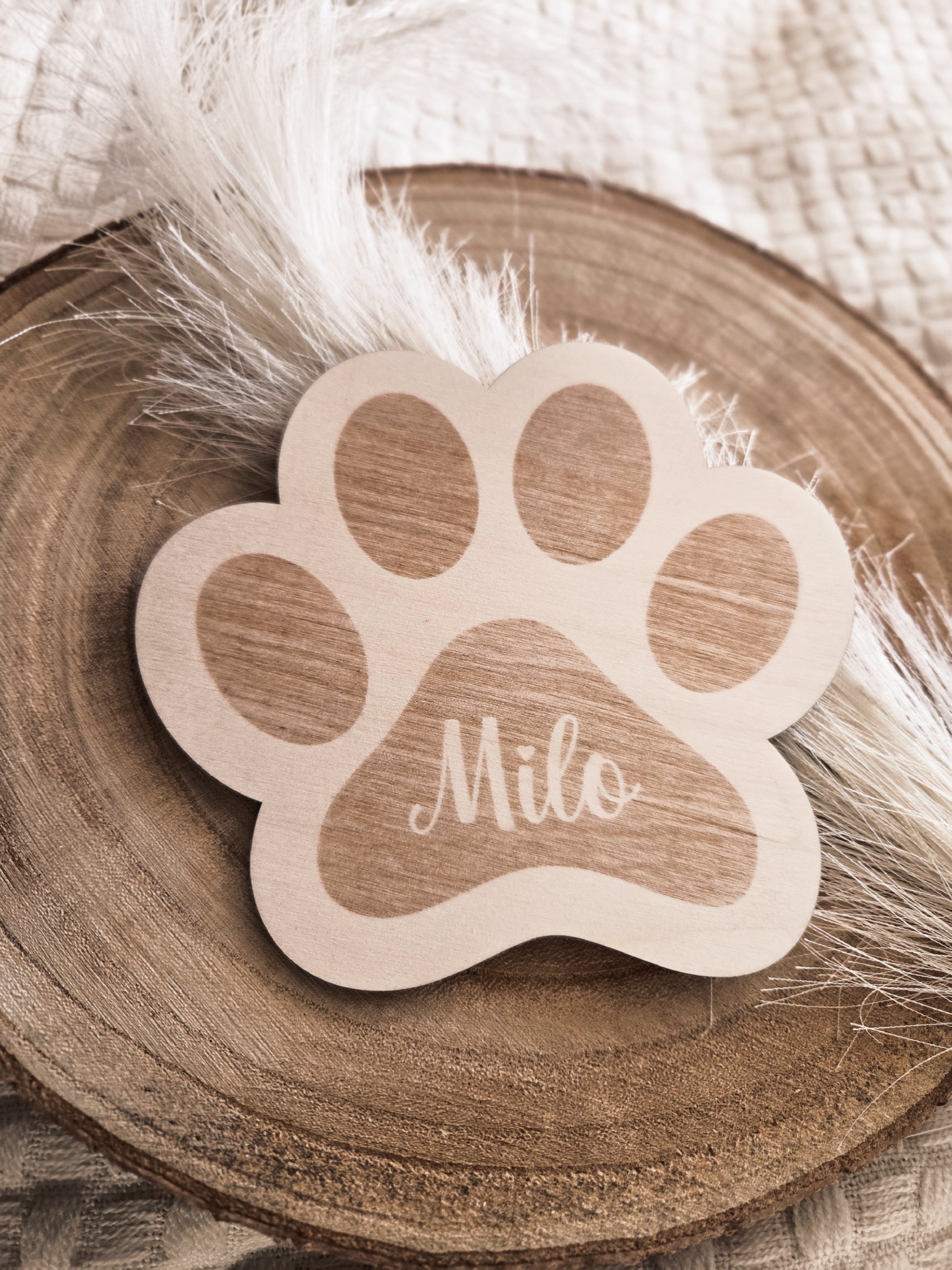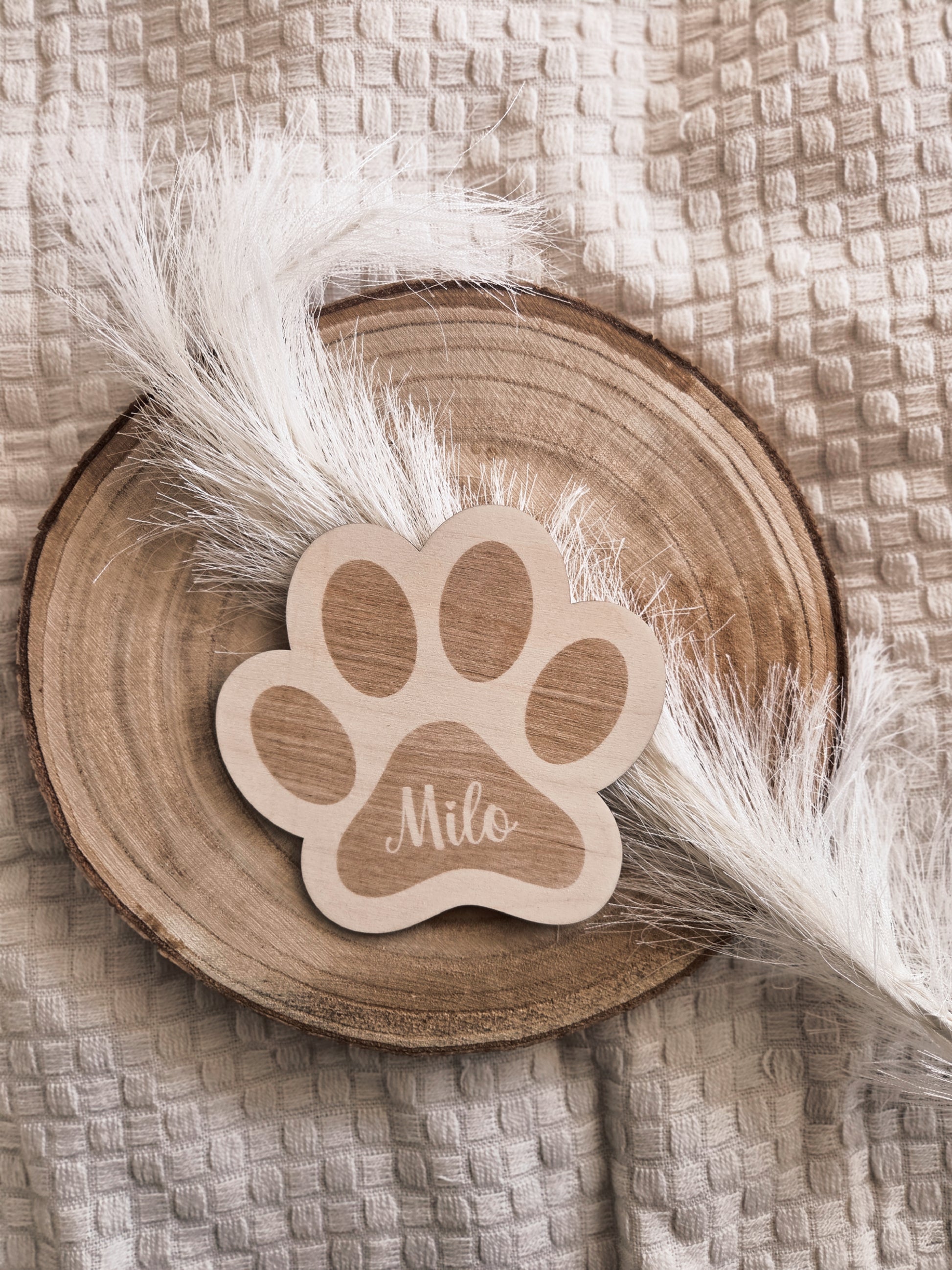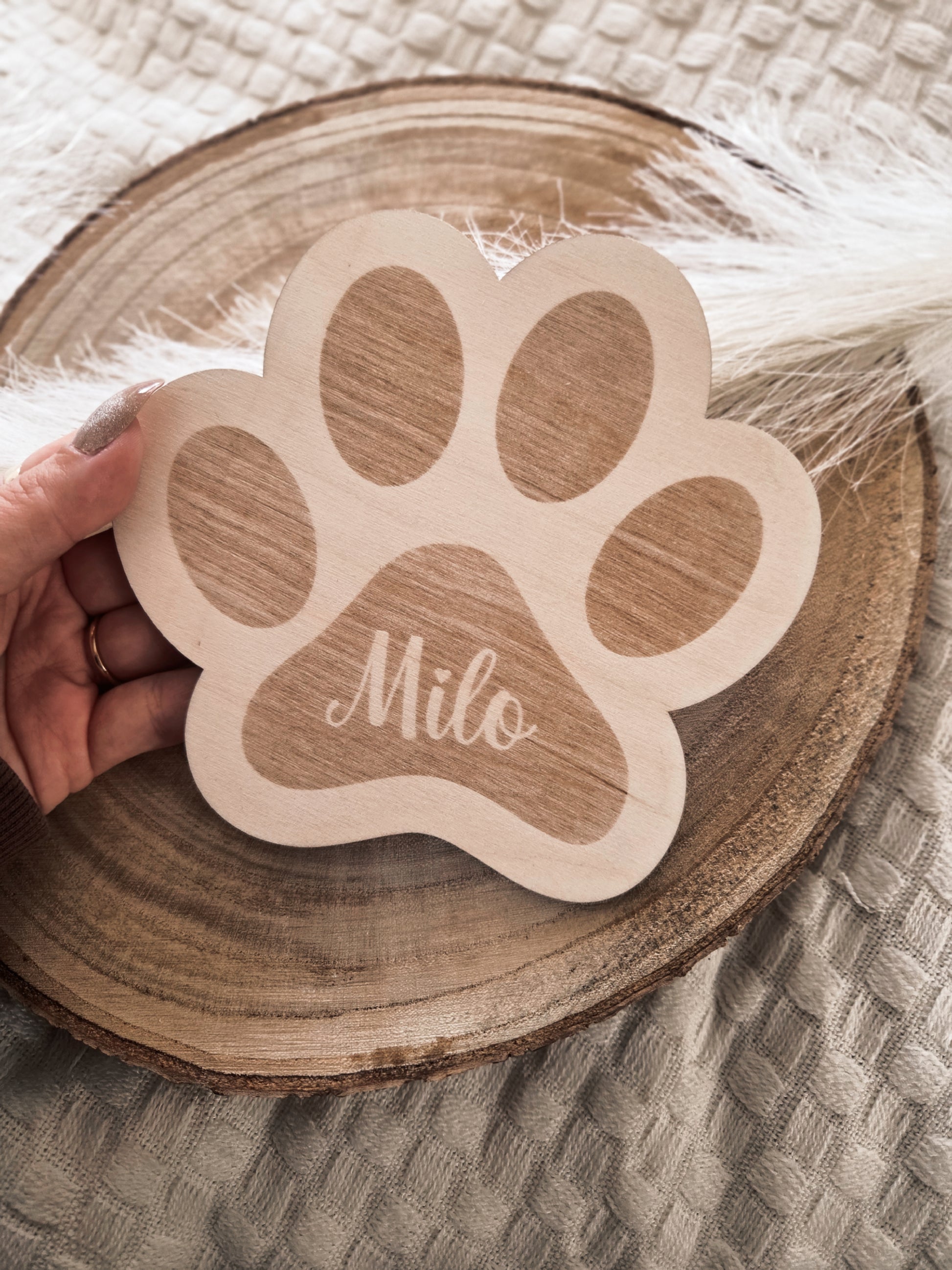 Ob als süße Ergänzung über dem Körbchen, als Willkommensschild an der Haustür oder als dekoratives Element an der Wand über dem Futternapf – dieses Holz-Namensschild macht dein Zuhause ein Stück persönlicher und zeigt jedem Besucher, wem dein Herz gehört.